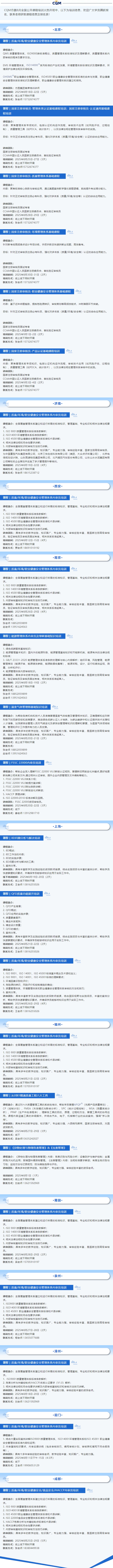 CQM方圓2025年8月全國公開課程培訓(xùn)計(jì)劃