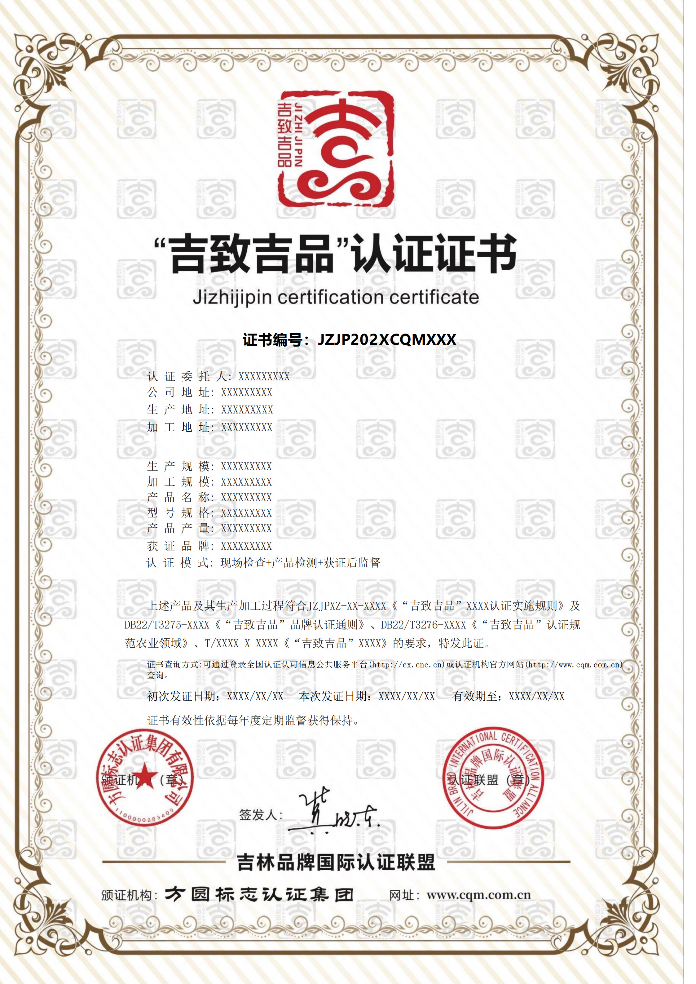 2. “吉致吉品”證書樣式: