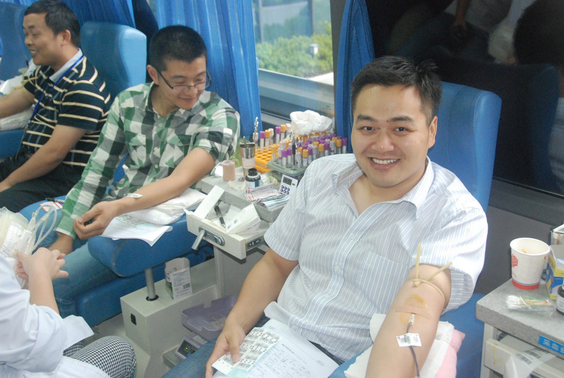 “8·2”昆山中榮特大事故造成了重大人員傷亡,醫(yī)療救助急需大量用血,而江蘇省血液中心的庫(kù)存已告急。接到江蘇省質(zhì)監(jiān)局機(jī)關(guān)黨委的通知后,方圓江蘇分公司黃文君、王冉、葛培等6名黨團(tuán)青年員工自告奮勇,踴躍報(bào)名,趕赴江蘇省質(zhì)監(jiān)局龍江大廈臨時(shí)獻(xiàn)血點(diǎn)義務(wù)獻(xiàn)血。采血車?yán)铮r紅的血液緩緩流進(jìn)獻(xiàn)血袋,志愿者們的臉上始終洋溢著自豪溫暖的笑容,獻(xiàn)血現(xiàn)場(chǎng)充滿著互助互愛(ài)的濃濃真情。