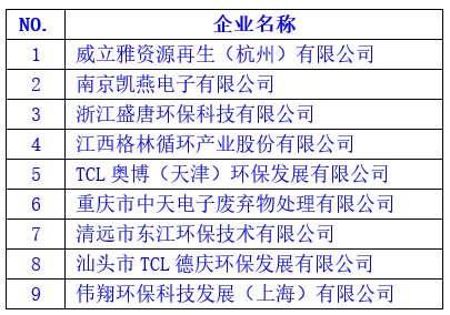 廢電器電子產(chǎn)品回收處理GHG減排量核證試點(diǎn)企業(yè)名單如下(排序不分先后):
